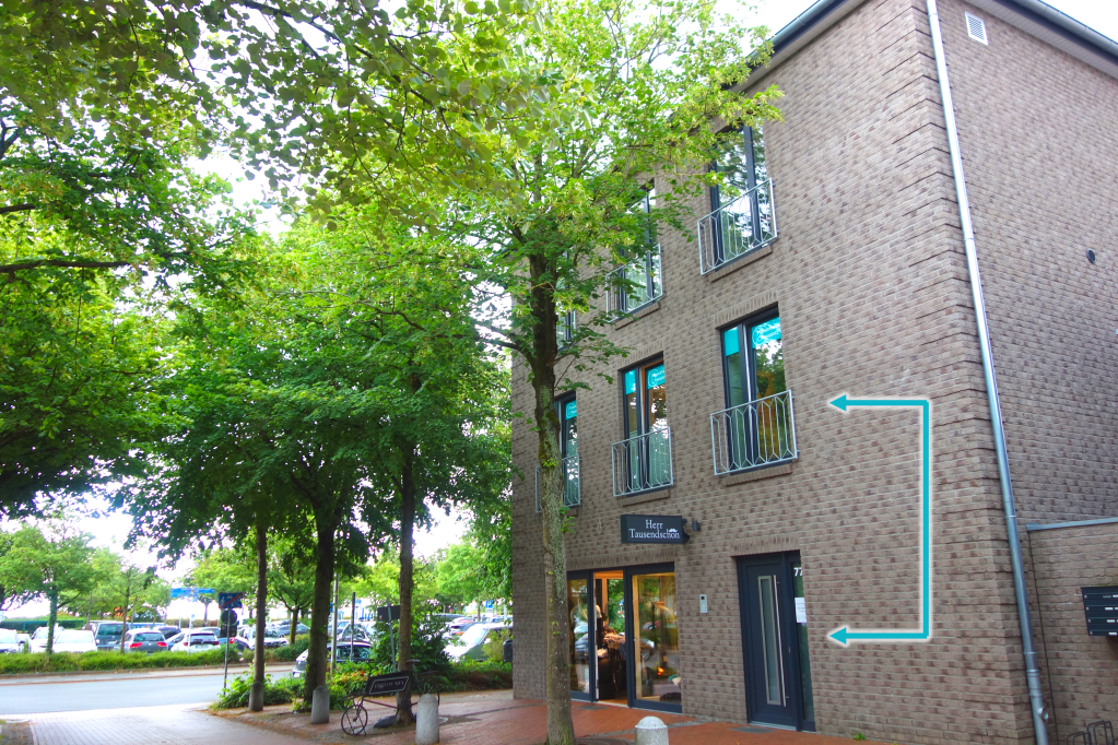 Mit dem Auto von „Am Exer“ kommend finden Sie zwei Kundenparkplätze direkt vor der Praxis, sowie den großen Exer-Parkplatz auf der anderen Strassenseite.